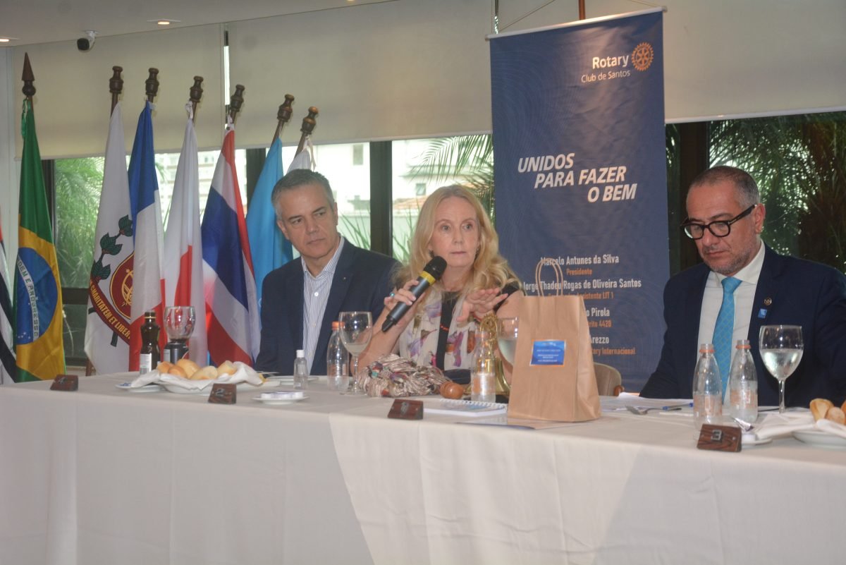 Falar de segurança hídrica significa promover cidades seguras e resilientes. Essa foi a tônica da palestra que a presidente do Instituto Supereco, Andrée de Ridder Vieira, proferiu no Rotary Santos, na última terça-feira (17/03/25).  Ela contou do Projeto do Instituto Supereco “Tecendo as Águas: Serra, Terra e Mar”, realizado em parceria com a Petrobras, por meio do Programa Petrobras Socioambiental, na promoção da educação socioambiental, da cultura oceânica e da mobilização social nos territórios costeiros até a economia circular e geração de renda.
