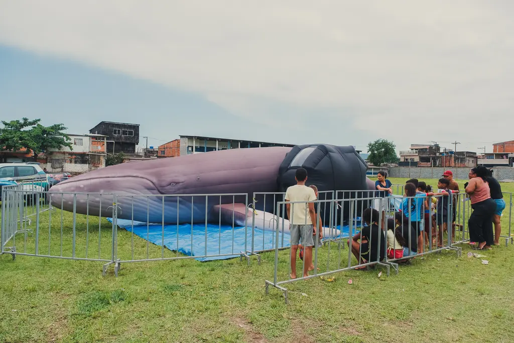 A réplica tem 14 metros de comprimento e permite que os visitantes entrem nela para conhecerem uma baleia por dentro, como funcionam os órgãos e como tudo funciona no organismo de uma espécie tão grande assim. “Uma coisa é a gente explicar para uma criança que uma baleia tem de 14 a 16 metros. Outra coisa é trazer uma réplica em tamanho real. Elas ficam encantadas e é assim que a gente sensibiliza, que a gente atrai a atenção de fato. Elas aprendem mais”, citou Isabelle Avolio, educadora ambiental do projeto.